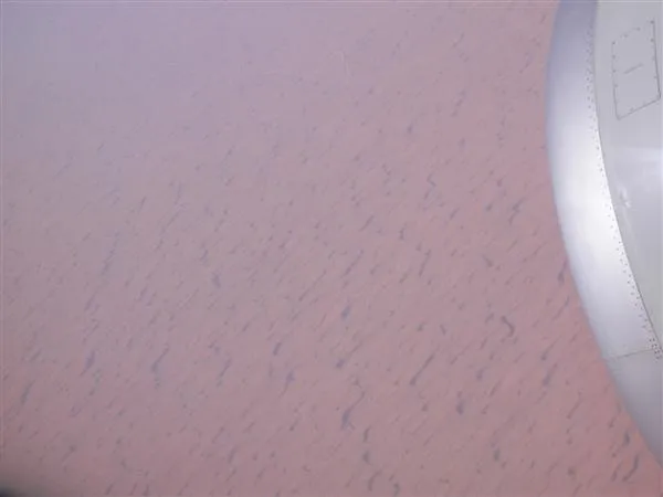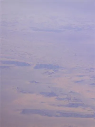終於上機,是窗口位,真好,日間看出去,全程都能看得到下面的地貌。看到 Doha 有些填海區,把地形填成一些圖案,很壯觀。在飛往 Cairo 途中,經過下面一大片沙地,是沙地阿拉伯吧,有時看見一個個很大的沙丘,想起中學時學的地理那些圖。又看見一些一個個黑色圓形的東西,不知是不是油田呢?經過紅海,西奈半島,一座座山。
