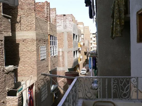 到站下車後,一心要去 Happy Land Hotel,突然有人拉著我,說 10 E£ single room,又累又貪心的我跟了他去,他說他叫 Happy,他載我回旅館,穿過幾條街,很破舊,完全不認得路,這是我第一個錯誤的選擇。看過房和浴室,都不錯的,但他說要 15 E£,也好吧。因為太累和神智不清,托他代我訂第二天早上的熱氣球、到 Aswan 的火車票以及今天到 West Bank 的包車。