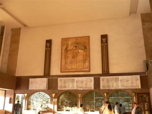 已經很累,好吧。到達 Ramses 火車站。見個司機真的沒怎樣,便給了 1 E£ 小費。買當晚去 Luxor 的火車票,售票處很混亂,當地人不習慣排隊,死力逼進去,原來那裡不是買頭等票的。另一個售票處,雖然比較少人但都要擠進去買,只要晚上十時的票,也沒法。唯有在車站外買買食物和周圍逛逛。
