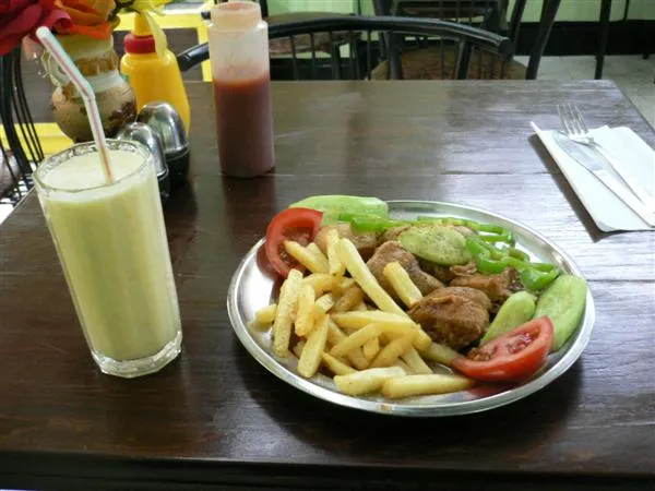 火車站附近有間果汁店,有新鮮的果汁,要先買一些代幣才換飲品。我喝了一大杯甘蔗汁,好像加了奶,很好喝,只用 PT 50 ( E£ 1 = 100 PT)。吃了一個羊肉包。逛了幾條街,老實說,雖然有風味,但街道都很多車、人和廢氣,沒什麼心情逛。