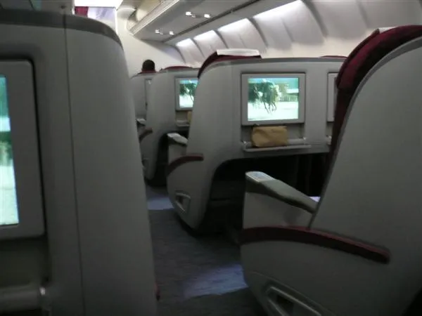 意外地,這次登機不用查文件,終於上到機,找位子,找著找著,越行越前,真的是 business class!還沒坐好,服務員便問我想喝什麼。想不到,第一次,可能是最後一次坐這種 class,是在這種情況。